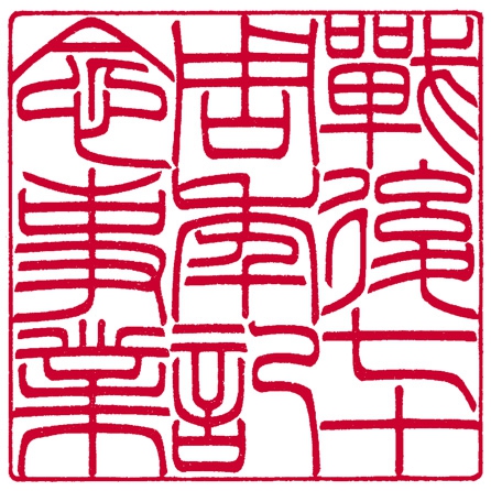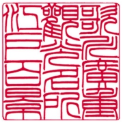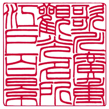 「思無邪」(篆書) 第20回全国印章技術大競技会 <銀賞> 「密刻2回目のチャレンジ。鏡絵の龍と均一の模様を配し、更に前回より細かい部分を増やしました。特に外枠の白抜き模様は寸分のミスも許されない緊張の連続でした。時間が取れずやや精度の甘い作品になってしまったのが悔やまれます。」